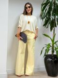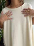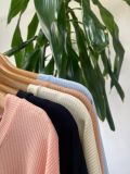 O tecido tem textura canelada leve, com toque macio e caimento que não pesa, deixando o visual moderno e despretensioso.