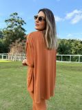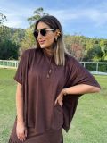 A modelagem ampla e moderna tem aquele charme da assimetria: mais compridinha atrás e com mangas curtas que deixam tudo mais despojado.