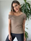 O decote transpassado com um ombro à mostra valoriza o colo de um jeito sutil e feminino, enquanto o outro ombro estruturado traz equilíbrio e um ar mais refinado ao look.