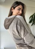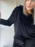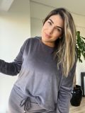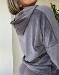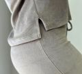 Comprimento na altura do cós e a parte de trás um pouco mais compridinha.
