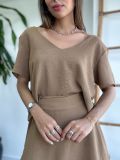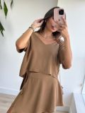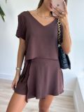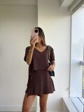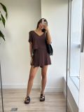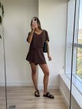 O decote V, presente tanto na frente quanto nas costas, adiciona um charme extra à peça, tornando-a única e sofisticada.