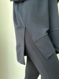 As fendas laterais e o acabamento largo na barra dão um toque de sofisticação ao visual minimalista.