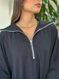O zíper tratorado frontal dá charme e versatilidade: aberta, cria um decote mais despojado; fechada, garante um visual moderno com gola alta.