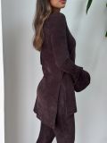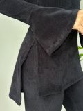 Feita em veludo cotelê, ela entrega textura e elegância sem esforço — além daquele conforto quentinho que a gente ama.