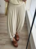 A modelagem é soltinha, com cós largo que se ajusta perfeitamente ao corpo e punho na barra para um acabamento moderno.