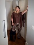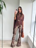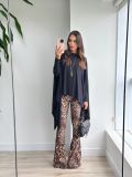 A nossa Calça Flare em cirrê com estampa animal print é daquelas peças que você veste e já sente o poder.