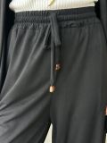 O cós elástico proporciona maior conforto, enquanto a amarração feita no mesmo tecido, com ponteira ovalada resinada, adiciona um toque sutil de sofisticação.