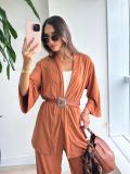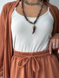 Essa peça é ideal para compor um look harmonioso e elegante com o Kimono Curto Suede, criando um conjunto refinado.