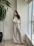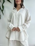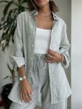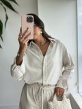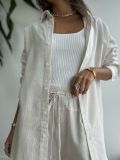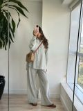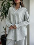 A camisa é perfeita para ser usada com a calça no mesmo tecido, criando um look harmônico e cheio de estilo.