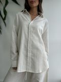 Esta camisa em algodão rústico, que visualmente lembra o linho, é a escolha perfeita para quem busca conforto e sofisticação com um toque contemporâneo.