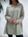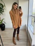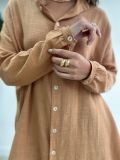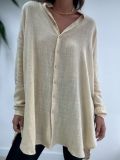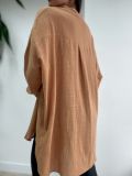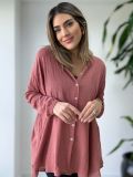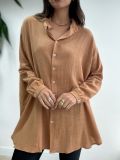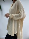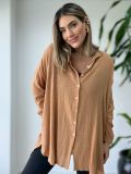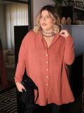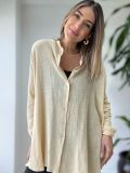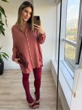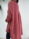 Essa camisa oversized é confeccionada em 100% algodão, com textura rústica que traz charme, autenticidade e um ar artesanal à peça. A modelagem ampla garante caimento fluido e muito conforto, enquanto os botões delicados e o detalhe nas costas com prega dão aquele acabamento refinado.