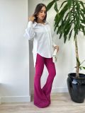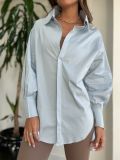 Os punhos largos e as mangas no estilo princesa, levemente bufantes, conferem um toque de elegância e leveza à peça, ideal para um look contemporâneo e cheio de estilo.
