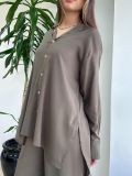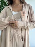 O fechamento frontal com botões em madrepérola adiciona um charme delicado e elegante, enquanto o punho levemente mais largo, com dois botões, oferece um detalhe extra que faz toda a diferença no visual.