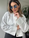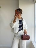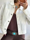 É aquela jaqueta versátil, perfeita para sobrepor vestidos, tops e regatas, ou até compor com calças de cintura alta — multiplicando produções com zero esforço, mas sempre com muita personalidade.