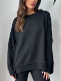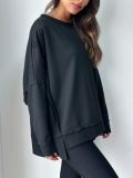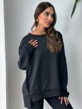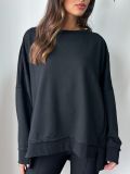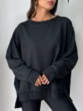 Feita em moletom super macio, ela tem acabamento a fio (o charme da vez!), recorte nas costas e um detalhe que faz toda a diferença: a lateral com abertura e a parte de trás mais compridinha, que dá um toque moderno e ajuda a cobrir o bumbum — perfeita pra usar com leggings, alfaiataria mais sequinha ou aquela calça comfy da mesma cor.