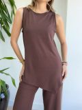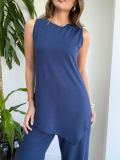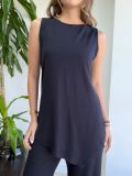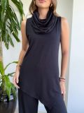A regata traz um toque moderno com a barra assimétrica — aquele detalhe que dá movimento e faz toda diferença no look.