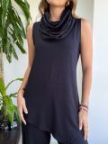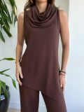 Mas o charme maior vem da gola removível, que transforma o visual: dá pra usar com ela, criando um efeito de gola alta super elegante, ou sem, pra um visual limpo e despretensioso.