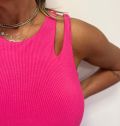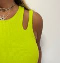 Regata na malha rib.Forradinha na parte do busto.Com recorte assimétrico no ombro e bem compridinha!