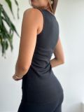 A modelagem ajustada ao corpo realça a silhueta sem perder o conforto, enquanto o tecido rib traz elasticidade e textura sutil, proporcionando um caimento impecável.