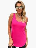 Com decote arredondado.