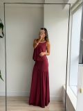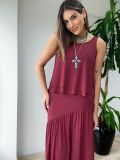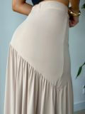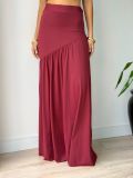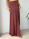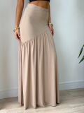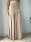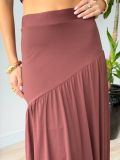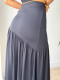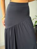 Confeccionada em malha fria com caimento fluido e toque macio, ela tem um corte moderno com recorte diagonal e franzido, criando um movimento lindo ao andar.