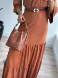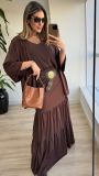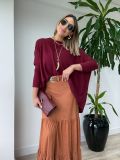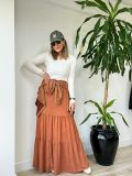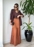 A nossa saia longa em suede traz um toque sofisticado ao visual com sua textura suave e acabamento impecável.