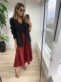 Com um caimento impecável e toque de sofisticação, esta saia midi plissada em cetim é a escolha perfeita para looks elegantes e modernos.