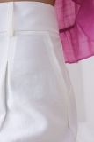 Com cintura alta, ele apresenta um botão em massa na mesma cor da peça e passantes que realçam a silhueta.