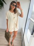 Tem modelagem soltinha, que não marca o corpo, e comprimento curto na medida certa — leve e sofisticado ao mesmo tempo.