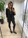 A calça skinny em suplex tem modelagem justinha, tecido encorpado e superconfortável, ideal para o dia a dia com toque fashionista. O destaque vai para o detalhe na barra com abertura para prender no pé — além de estilosa, essa modelagem ajuda a alongar a silhueta e valoriza o calçado, seja uma bota, mocassim ou tênis mais robusto.
