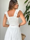 Este top cropped em laise é uma peça encantadora e delicada, perfeita para compor looks fresquinhos.