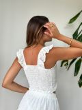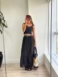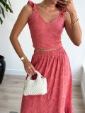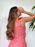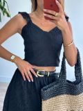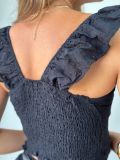 As alças, adornadas com um babadinho no mesmo tecido, acrescentam um toque de charme e feminilidade, tornando este top uma escolha versátil e estilosa para diversas ocasiões.