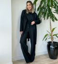 Use com a pantalona e a blusa no mesmo tecido e cor pra criar um trijunto versátil e atemporal – a escolha perfeita pra um armário inteligente!