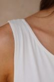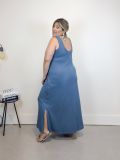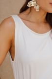 As pequenas fendas laterais (36cm) adicionam um toque sutil de sensualidade, enquanto o decote canoa na frente proporciona um visual sofisticado.