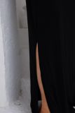 visual personalizado e elegante. As fendas laterais adicionam um toque de sensualidade e frescor, tornando a peça perfeita para ocasiões especiais ou para um look sofisticado no dia a dia. Seu design minimalista e a